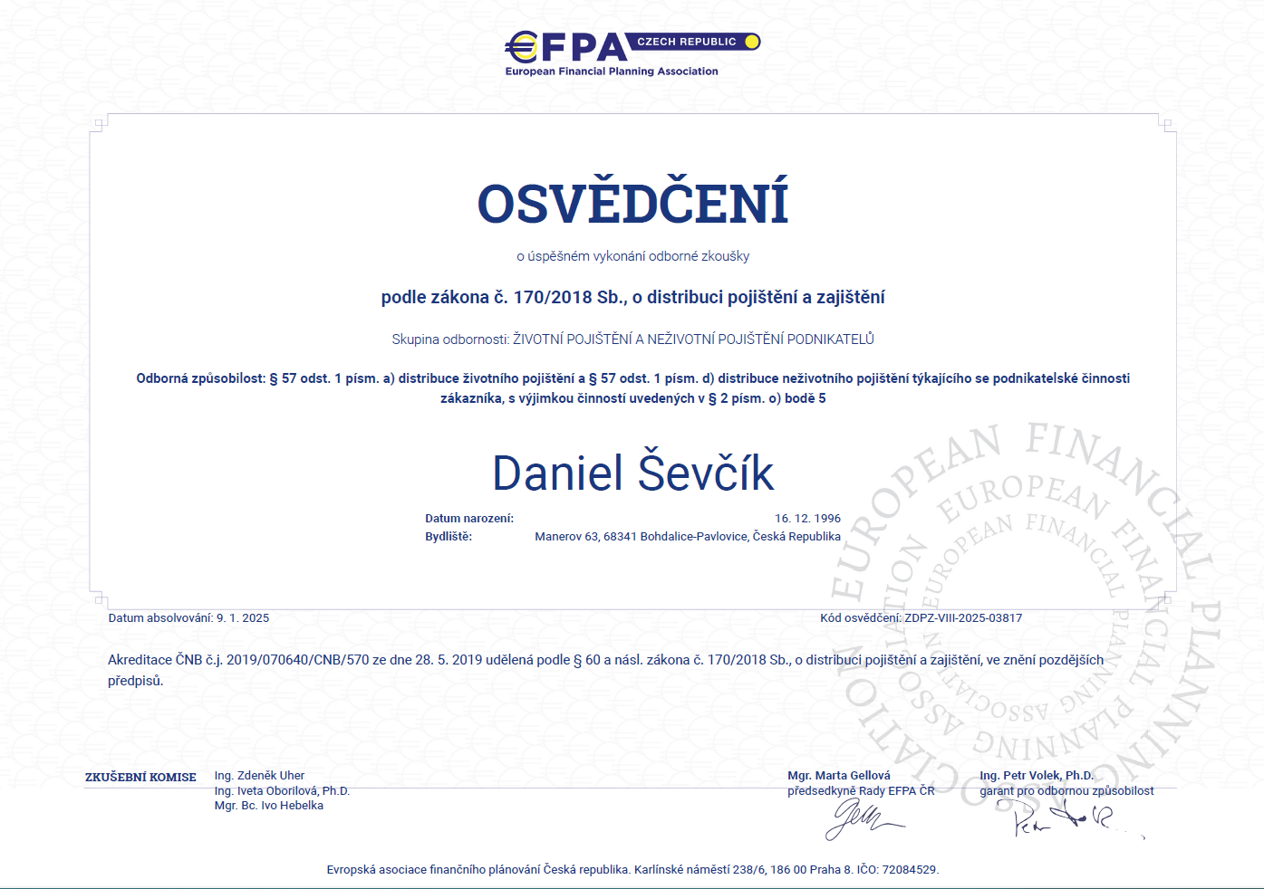 Budoucnost vaše a vašich dětí závisí mimo jiné i na finanční jistotě v rodině. Společně s vámi sestavím plán tak, abyste na důležité životní cíle byli připraveni. Najdeme cestu, která vám zajistí zabezpečení vašich dětí a potřeb.