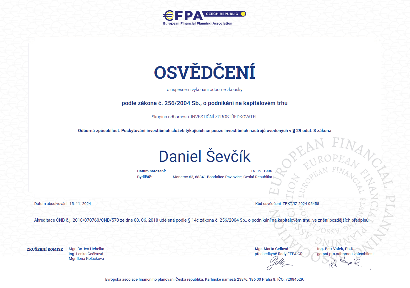 Jmenuji se Daniel a jsem Váš parťák na finančním trhu.