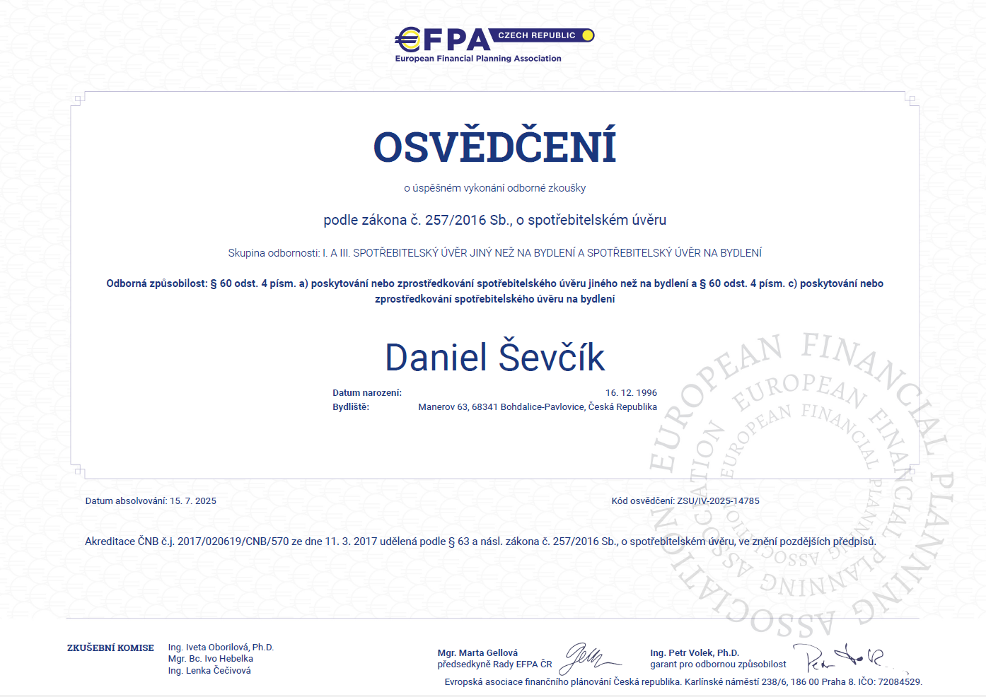 • Se mnou máte jistotu, že moje rady jsou nezávislé – neupřednostňuji žádnou banku, pojišťovnu či jinou instituci.